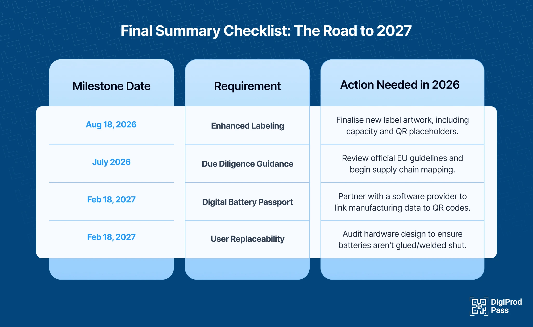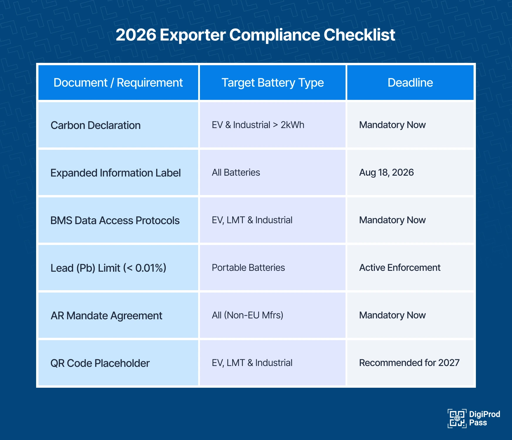 While 2026 is about labels and physical documents, February 18, 2027, marks the digital revolution for the battery industry. If you haven't started building your digital infrastructure by late 2026, you will face an export wall in early 2027.